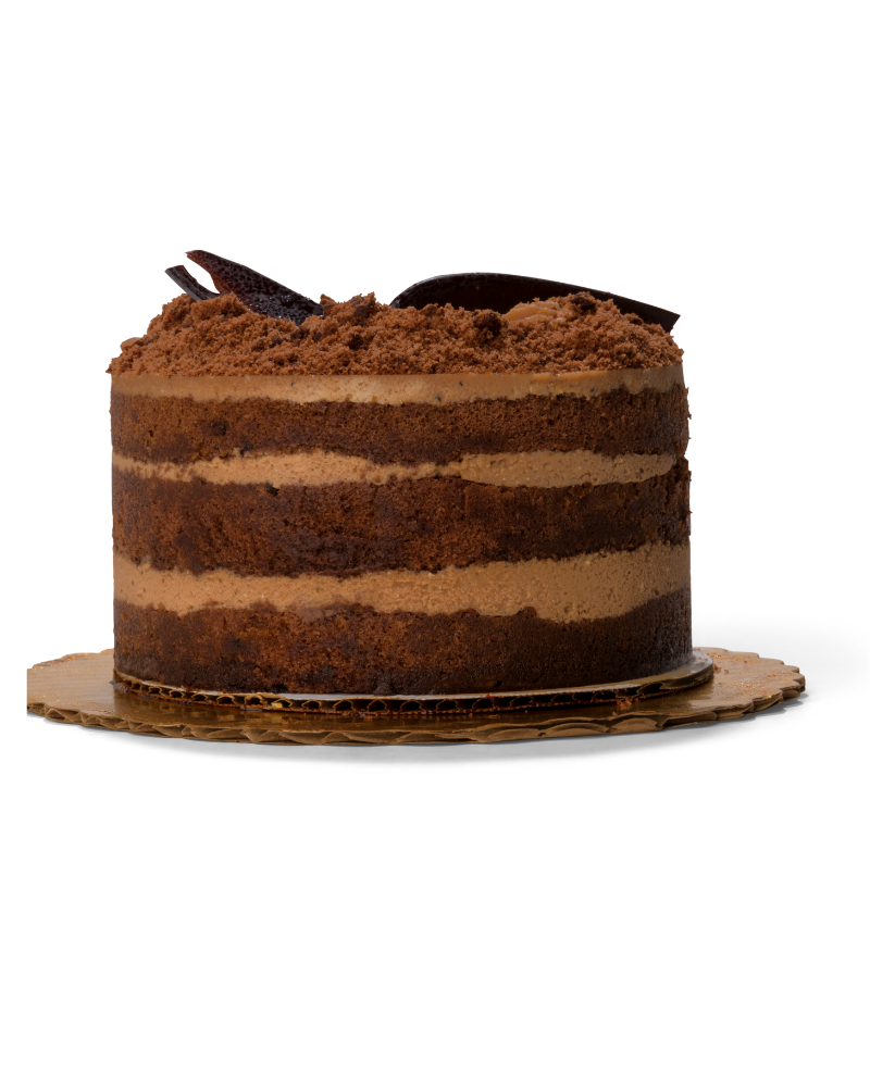 Rich, fudgy layers with a smooth chocolate cream finish. Exposed sides give it a rustic and irresistible look. Decadent and perfect for chocolate lovers.