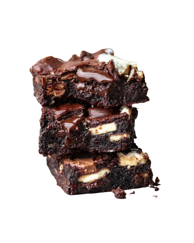 Triple chocolate brownies bursting with dark chocolate, milk, and white chocolate bliss.